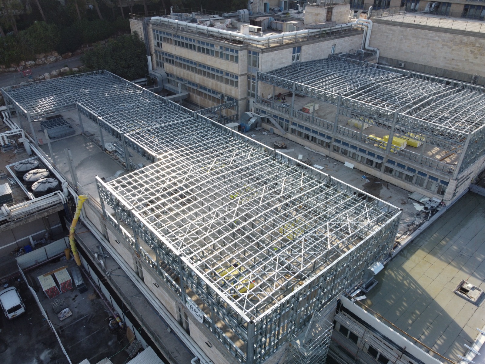 The Corona building is an extension of Shaare Zedek Hospital on the roofs of the 3rd and 4th floors. The structure is a light steel structure built from a Mitech construction. Content of the work in the project: Deaf frameworks of construction and cladding, aluminum, craftsman frames, plaster and sealing. |